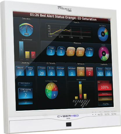 CyberMed MP15T medical computer, and the CyberMed H19. The Cybernet PCs had the processing power and functionality to run their EMR applications, with outstanding 24/7 reliability. The nurses are quite pleased with the responsive touch screen capability, and the emergency room staff is very impressed with the speed at which they can switch screen views.